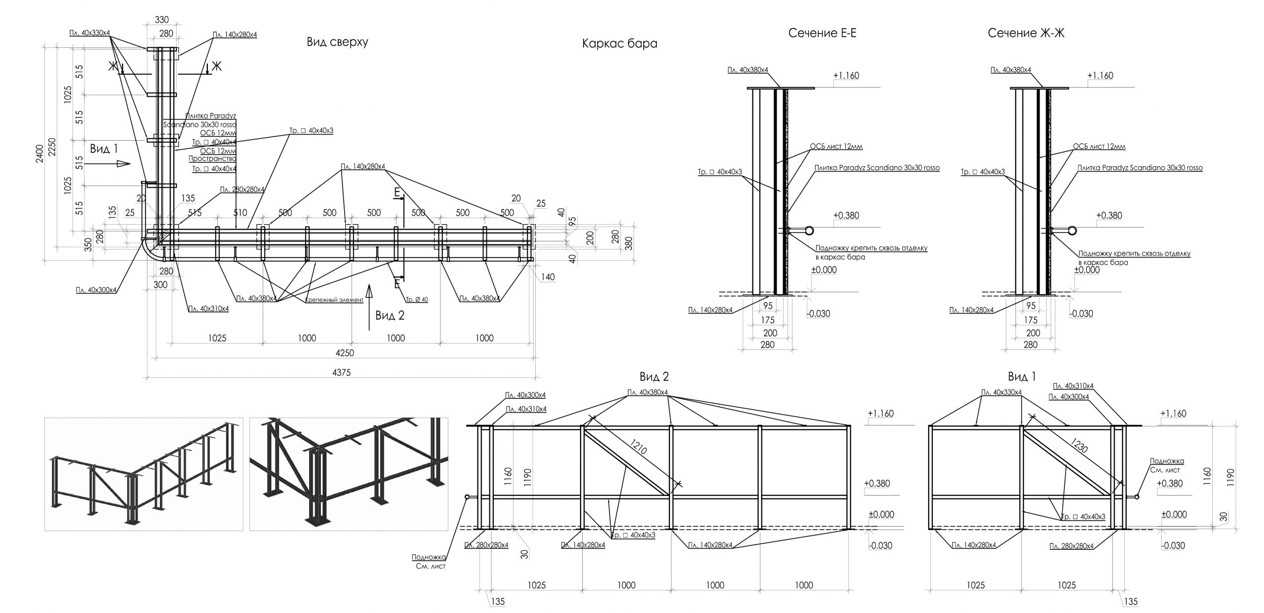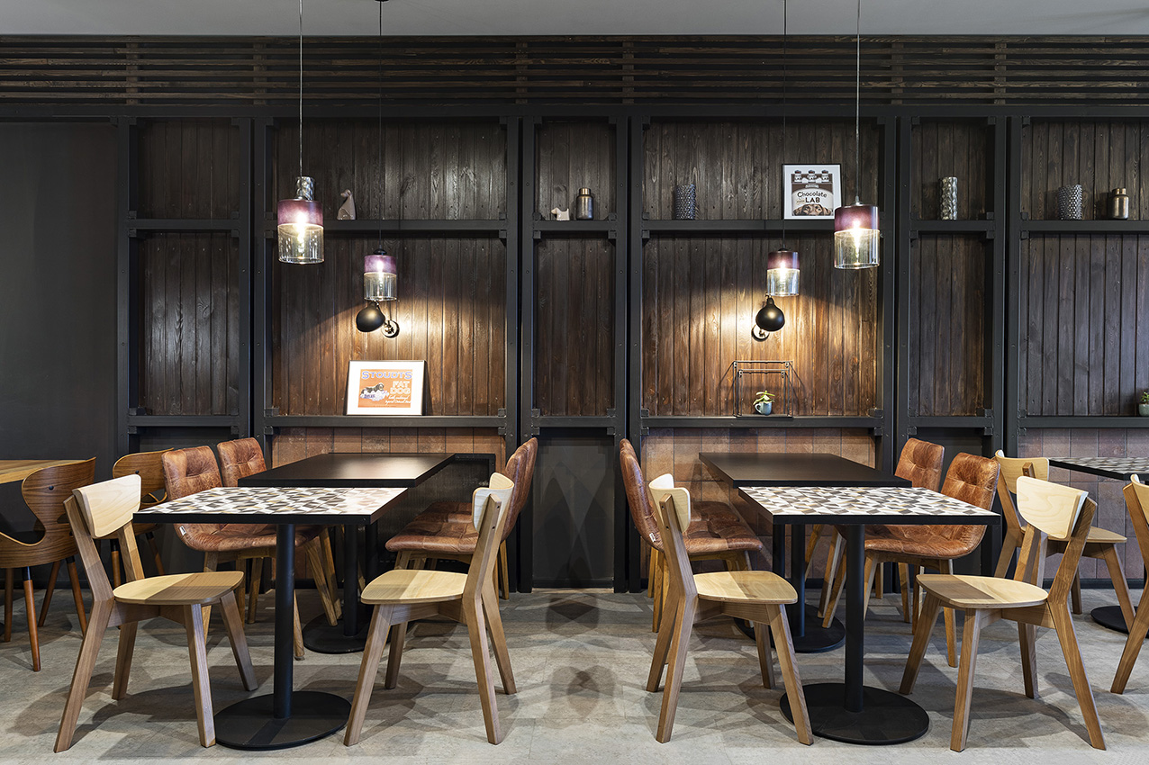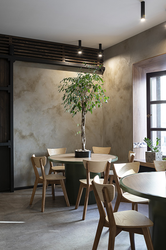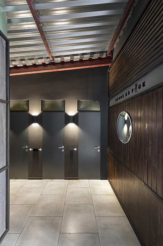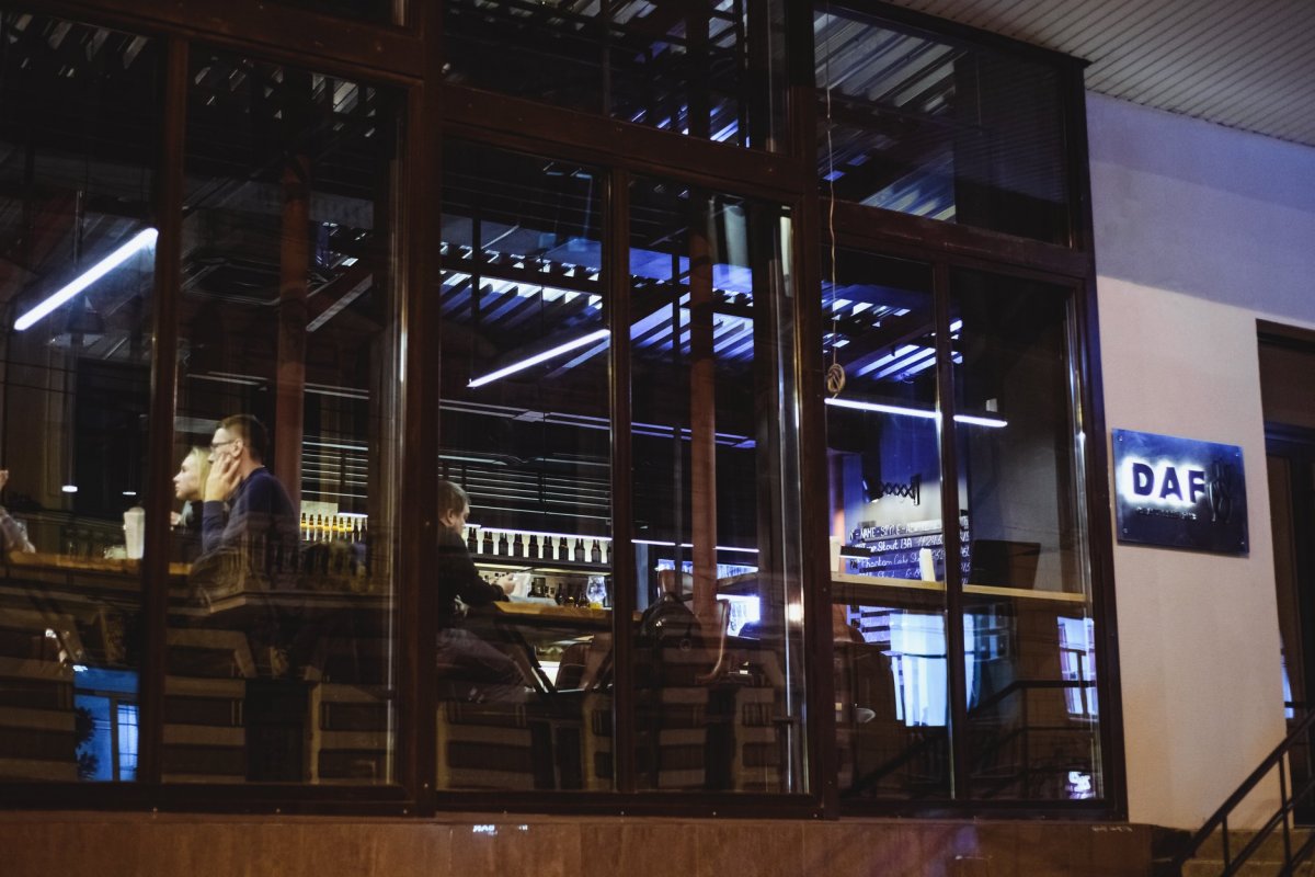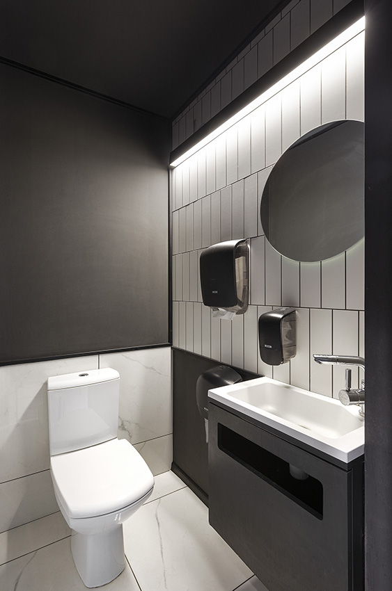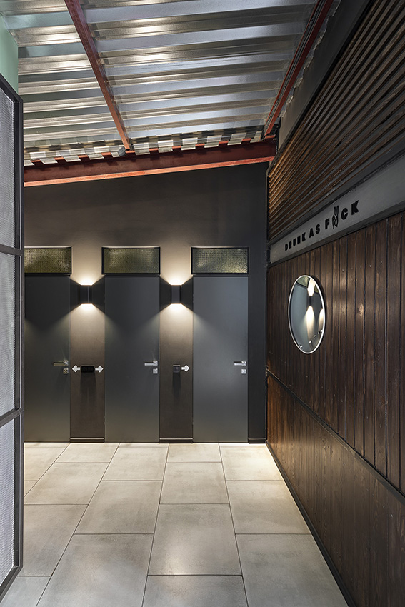 The planning decision involves the allocation of the following zones: a functional kitchen, two pub halls, a VIP hall, a utility room for a keg room, and a space for bathrooms. The main idea of the space is the bar counter, which has become a bright accent of the pub's interior. Getting into the first hall, it is impossible not to notice the bar counter with seating along it, a large number of beer taps and accent light. The bar counter divides the room into two functional zones - a dining area, and an auxiliary one - a kitchen, a keg room and bathrooms. Between the two halls there is a VIP hall for 10 people. The second hall is a competent interior of the pub - soft, sofa seating, communal tables for companies and tables for two and four. The "heart" of the DAF pub is stored in the keg - beer. A huge number of kegs are placed here, and for ease of operation and connection of kegs to taps, at the construction stage, a pipe system was laid in the floor between the bar and the utility room.