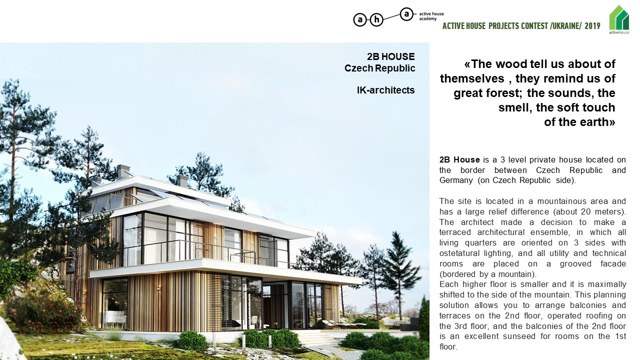 The Ukrainian project of a private house 2B HOUSE from the IK-architects team entered the top three finalists of the Active House competition at Active House Days in Ukraine 2019.