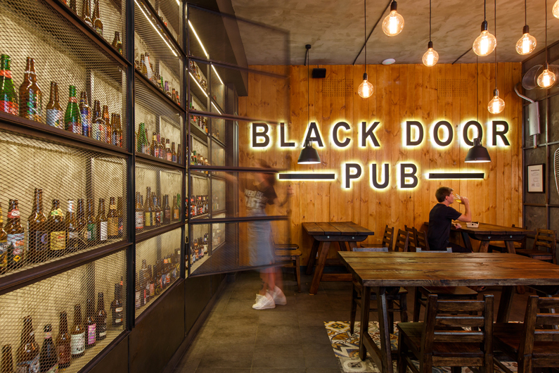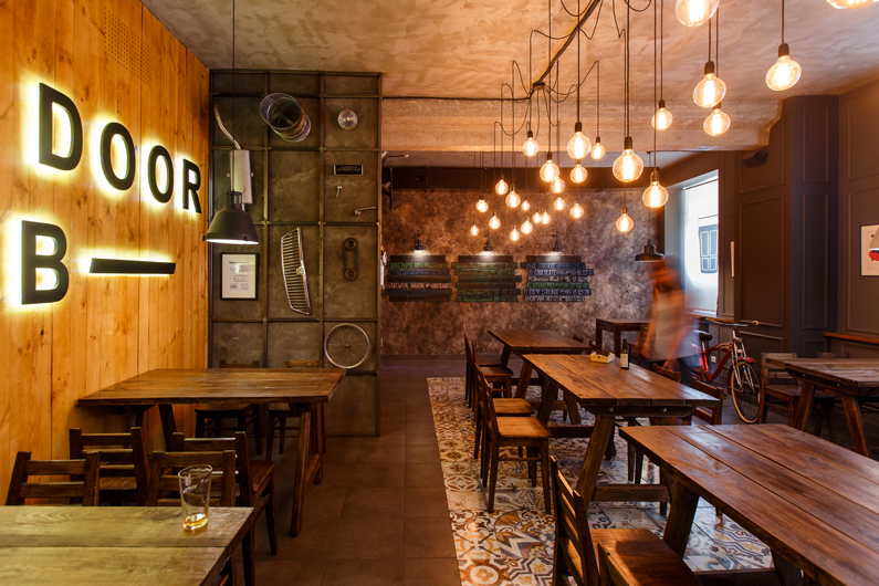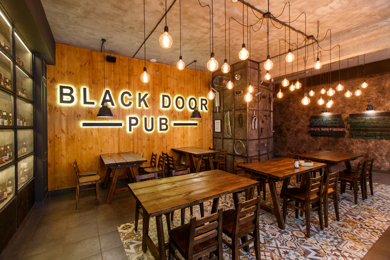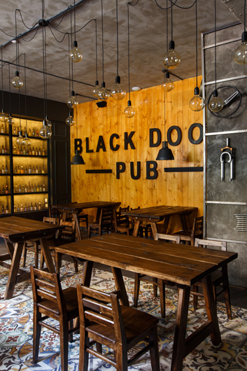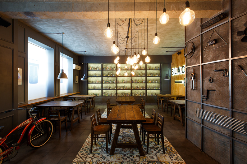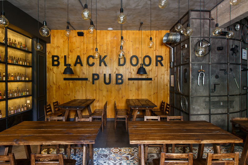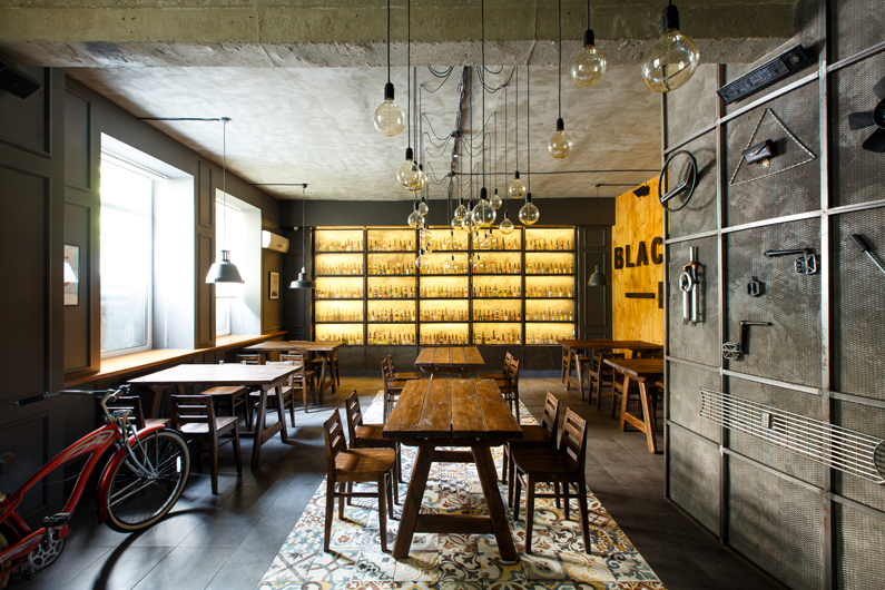 программа: Дизайн интерьера зала Black Door Pub, с использованием гаражной атрибутики