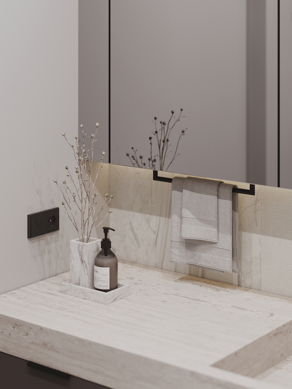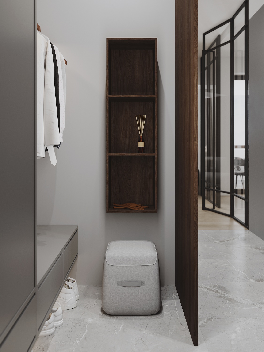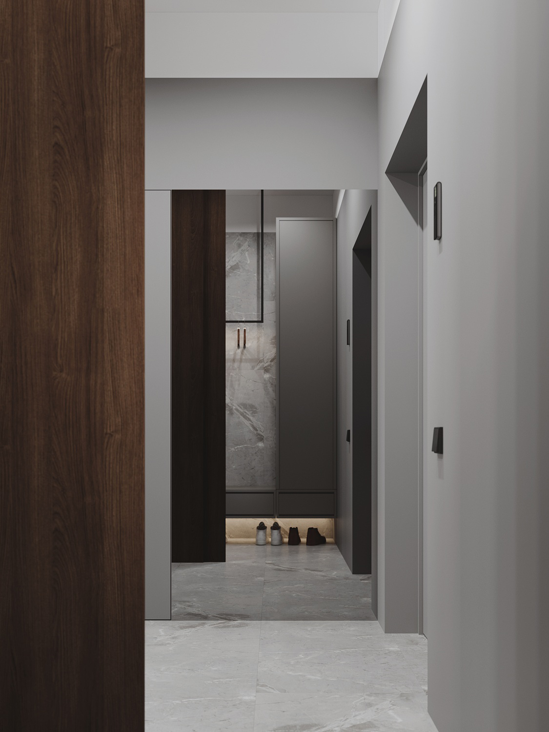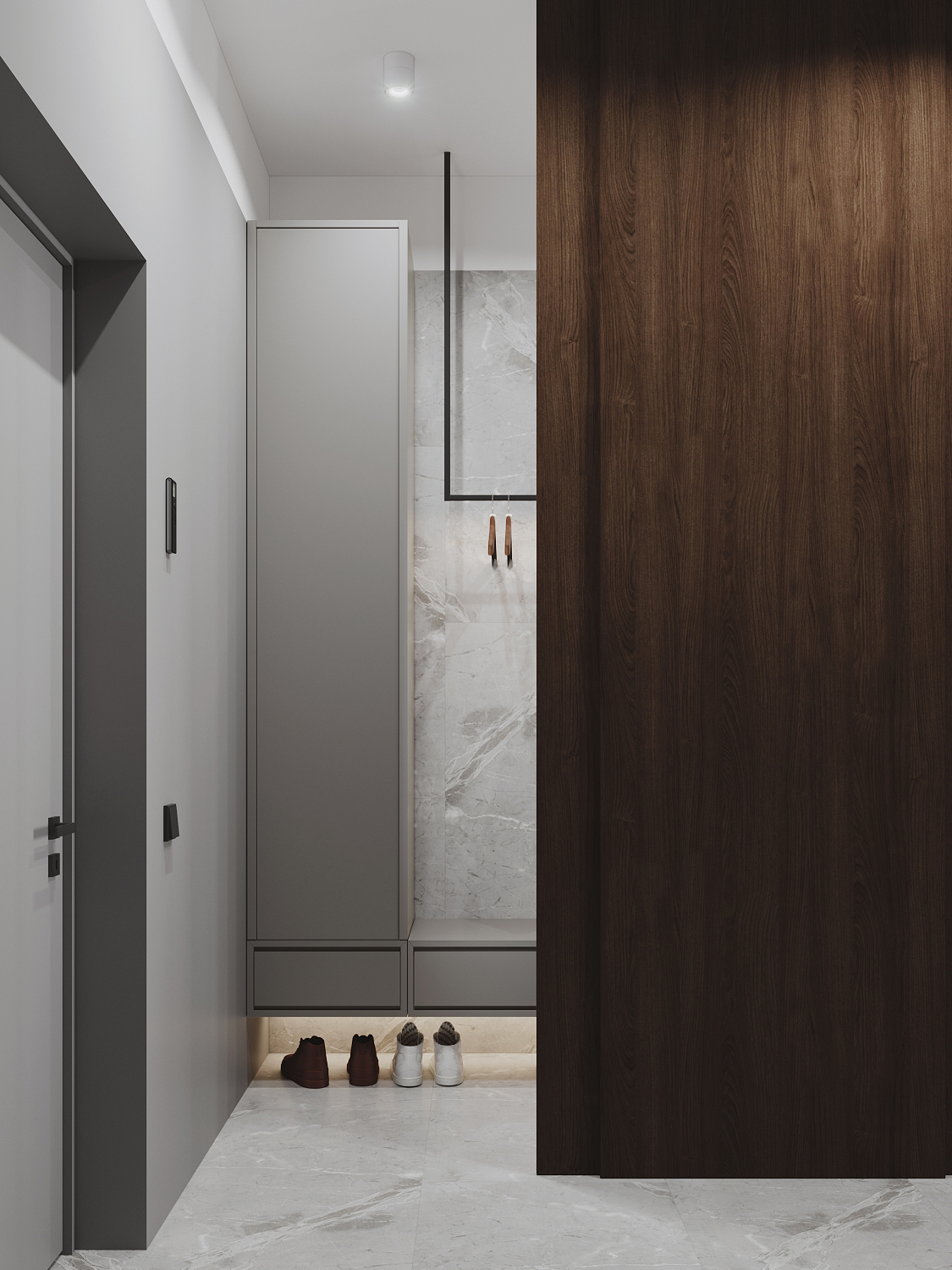 В ходе проектирования интерьера было принято решение сохранить функциональные зоны квартиры в тех же местах, но трансформировать пространство: