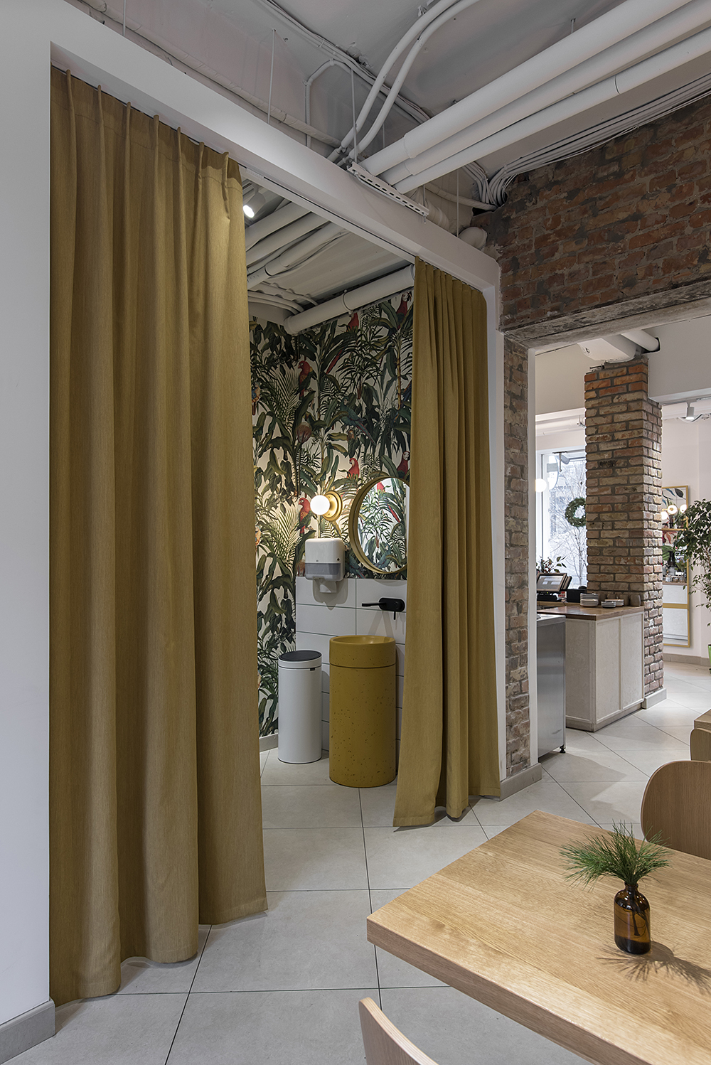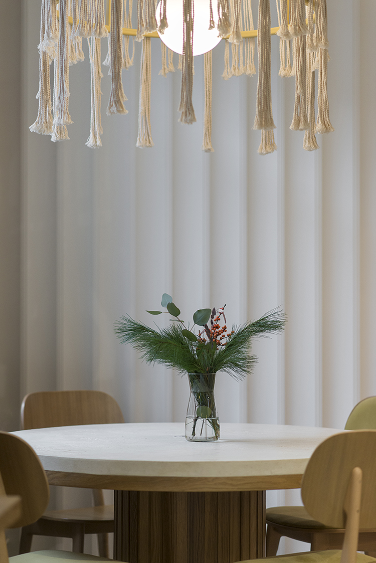 Очень интересно работать с концепцией Krasivo est’ в разных помещениях она дополняется новыми акцентными деталями: кирпич, бетон, разные обои – но основная концепция остается неизменной — сочетание простоты и функциональности, природные цвета, обязательное использование фирменного паттерна, и главное теплый, акцентный свет, который выявляет детали и элементы интерьера, выделяя их.