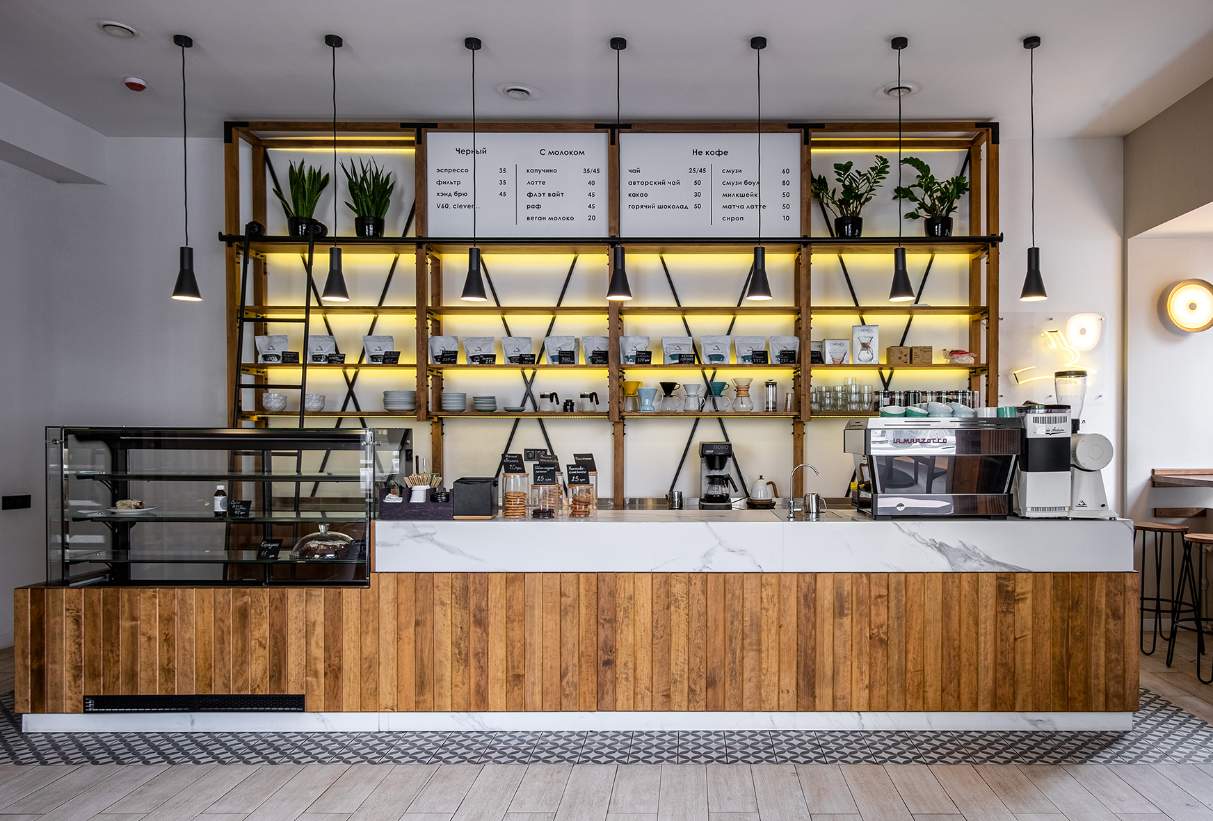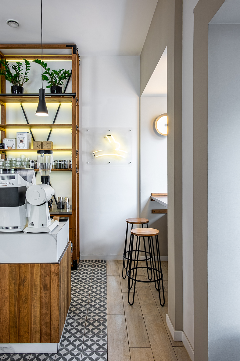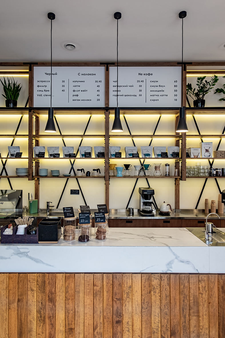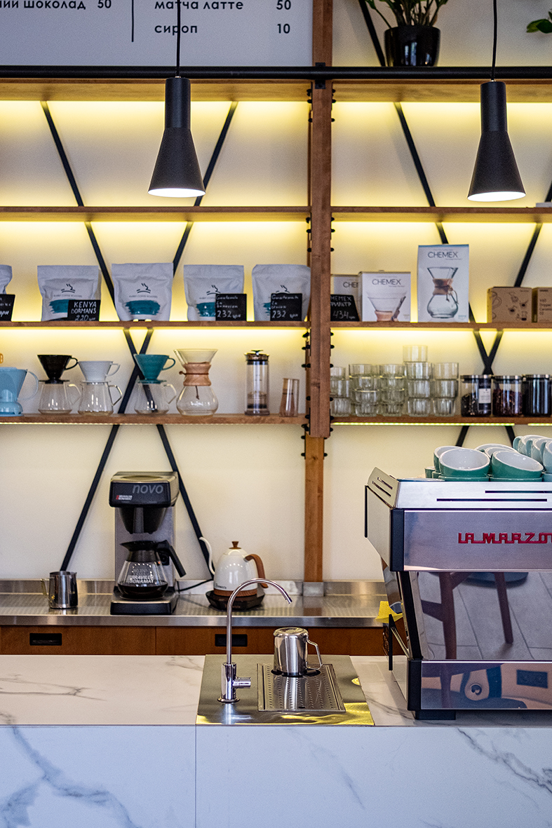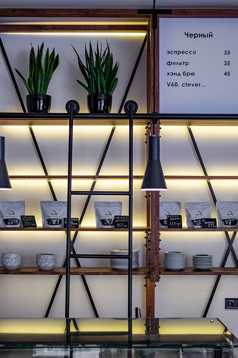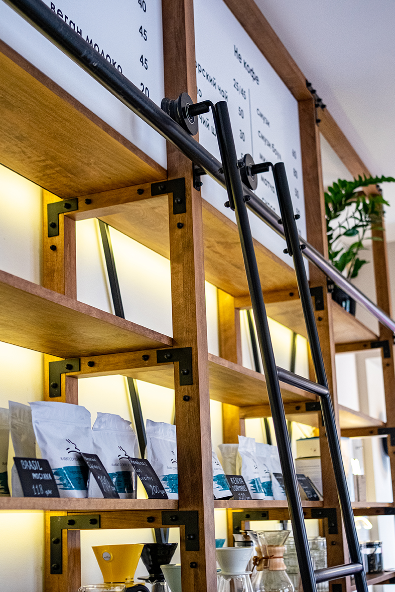 Автор проекта, Екатерина Яровая, говорят, что «Rabbit coffee place» — место про кофе и атмосферу. Изначально coffee shop задумывался как пространство, в котором обжарщик Rabbit Coffee Roasters сможет презентовать свой кофе, а гости смогут продегустировать и купить зерно, однако в итоге решено было расширить концепцию и теперь в заведении предлагают попробовать десерты.